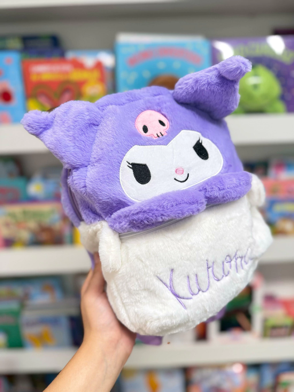 Descubre la Mochila Kuromi, el complemento ideal para los más pequeños. Esta mochila con tela de peluche es perfecta tanto para la escuela como para llevar de paseo.